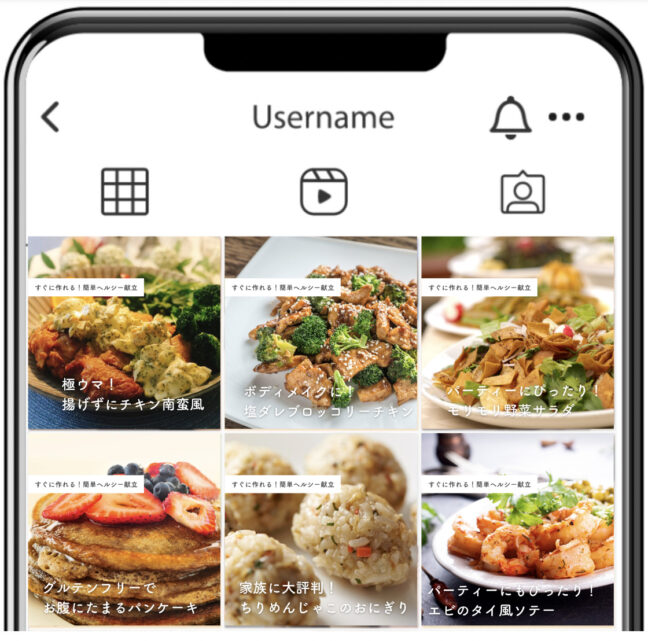 (フィード)、ストーリーズ等を含めて運用いたします。料理レシピを使った投稿と通常の投稿(料理以外の写真のみ、テキスト入りフィード投稿等)を組み合わせることも可能です。